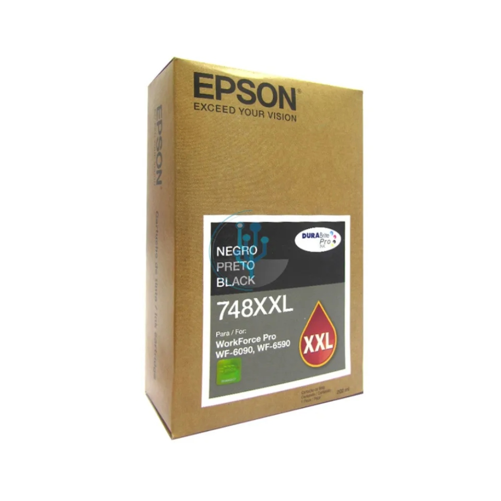 Cartucho de Tinta Epson T748XXL WorkForce ®, con calidad láser, ofrecen texto nítido y colores brillantes e intensos para todas tus impresiones en papel normal. Las impresiones son resistentes a la decoloración y al agua, por lo que seguro durarán mucho tiempo. Además, esta tinta de secado instantáneo te permite compartir tus impresiones con clientes y colegas de trabajo inmediatamente después de imprimirlas. WF-6090/6590 BLACK