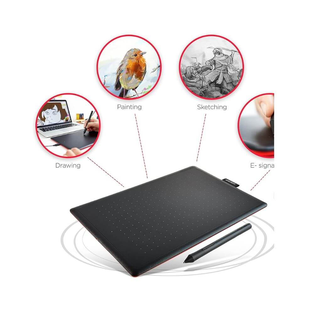 - Niveles de Presión: 2,048 niveles. Permite trazos finos o gruesos dependiendo de qué tan fuerte presiones el lápiz.